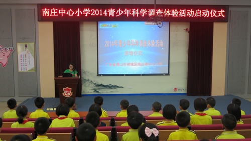 佛山市南庄中心小学2014科学调查体验活动启动仪式 2014年广东省青少年科学调查体验活动由省科协、省教育厅、团省委、省文明办等单位联合发文,得到了全省各地有关部门的大力支持,尤其广州、深圳、佛山、中山、东莞、江门、湛江、肇庆、潮州等地的学校积极参与。据不完全统计,全省360多所学校22多万名中小学校师生参加,47所学校在主题网站上报调查数据7456份。