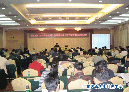 近日,第九届广东省青少年机器人竞赛活动组织工作者及教练员培训班在广州举行,来自广州、深圳、佛山、东莞、中山等10个地市的组织工作者、教练员和裁判员180多人参加。培训班邀请专家教授对第九届广东省青少年机器人竞赛的基本技能、足球、FLL、VEX和创意等五项竞赛规则作了详细的讲述,教练员们进行了竞赛活动的现场操练,同时表彰了一批2008年度全省优秀组织单位、组织工作者和优秀辅导员、裁判员。