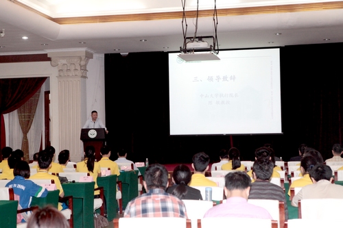 省青少年科技中心主任叶新鹏、中山大学逸仙学院执行院长陈敏代表省级管理办公室和中山大学作发言,介绍活动情况,对学生提出建议和希望。中山大学逸仙学院十分重视拜师仪式,专门为全体学生定制纪念衫,并将拜师地点安排在中山大学最具代表性的怀士堂举行。