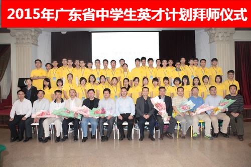 3月22日上午,2015年广东省中学生英才计划拜师仪式在中山大学隆重举行。31名新入选学生和14名继续培养的学生向尊敬的导师鞠躬献花,行弟子礼,揭开了为期1年的学习历程。省青少年科技中心、中山大学逸仙学院、广州市科协和教育局的领导,以及各学校老师、家长共同见证了这一激动人心的时刻。拜师仪式后,同学们开展了参观实验室、导师团队座谈、导师授课等各项活动,开始他们人生中重要的第一课。