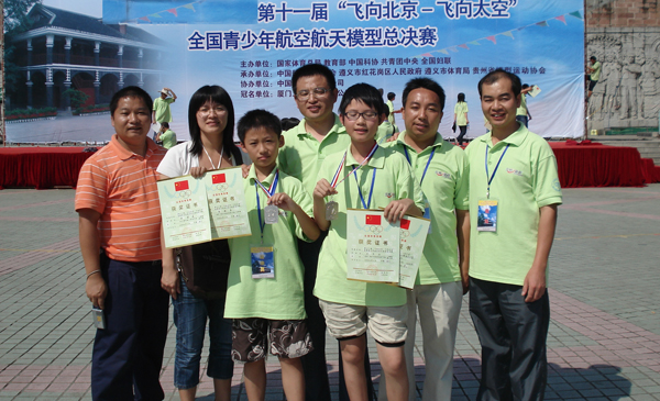 2009年8月23日,第十一届“飞向北京-飞向太空”全国青少年航空航天模型总决赛在贵州省遵义市圆满结束。东莞市代表队勇夺7金8银11铜牌,在全国36个代表队中脱颖而出,金牌数位列第二,奖牌总数全国第一,金牌数与奖牌数均比上届上升了两位。 全国青少年航空航天模型比赛由国家体育总局、教育部、中国科协、共青团中央、全国妇联主办,是全国青少年航模活动最权威的赛事。来自全国23个省市的36支代表队参加了本届赛事,其中多为北京、上海、宁波、昆明、青岛、广州、深圳等传统强队。东莞市自2007年开始组队参赛,由19所学校的50名中小学生参加了包括遥控模型直升机障碍赛等5个遥控项目、扑翼模型飞机留空时间等4个非遥控项目和水火箭打靶3个兼项在内共12个项目的比赛。 东莞市代表队在遥控模型直升机室内障碍赛项目上继续表现出明显优势,囊括了本项目全部3枚金牌。其中,在小学组遥控模型直升机障碍赛中,东莞队黄晓彤、黄楚瑶、欧文龙、吴素真四名小选手沉着冷静、技术娴熟,在两轮比赛均取得800分满分,其中石龙九小黄晓彤同学以39.45秒的最好成绩摘取小学组金牌,石龙九小的黄楚瑶、长安二小的欧文龙和吴素真同学分获小学组第二、三、七名。厚街湖景中学林英树同学获得了这个项目中学男子组冠军,南城中学黄瑾婷同学获得中学女子组第一名。 (东莞市青少年科技教育协会、东莞市青少年活动中心供稿)