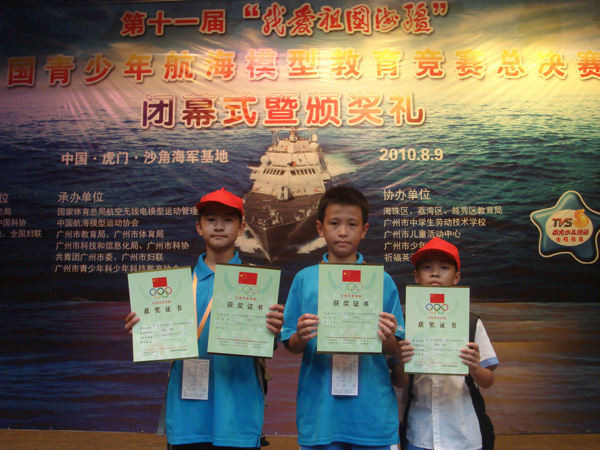 8月9日,第十一届“我爱祖国海疆”全国青少年航海模型教育竞赛总决赛在水兵摇篮——沙角部队圆满落幕。第一次正式组队参赛的东莞代表队首战建功,乘风破浪,捷报连连,喜获8枚金牌,金牌数名列32支代表队第三名。