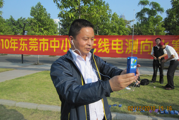 培训分为理论讲述和实践操作两部分。邵建波老师首先介绍了无线电测向运动的意义、特点和发展趋势,就短距离无线电测向竞赛规则进行了解释,并推荐了一些阳光测向活动的开展方法。李渝老师讲解了测向机制作的训练和参赛技巧;李敏老师介绍了无线电测向运动组队、训练和参赛的实操方法。三位老师结合实际经验,图文并茂、生动讲解。下午,全体老师到中心广场实际体验了无线电测向运动,观摩了2010年东莞市中小学无线电测向比赛并实习无线电测向裁判工作,对无线电测向运动有了更进一步的认识。(东莞市青少年科技教育协会、东莞市青少年活动中心供稿)