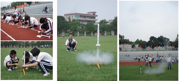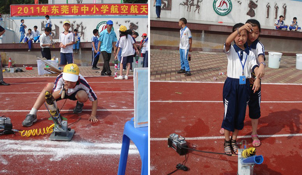 “嗖、嗖……”,一枚枚“火箭”拔地而起,直冲云霄;一架架“飞机”从头顶盘旋而过,与“火箭”在空中交相辉映,不时引来现场上千名师生的惊呼声。这是2011年东莞市中小学航空航天模型比赛现场。5月25日-26日,全市108所学校的874名选手在寮步香市中学,上演了一场场航模大战。同学们用梦想征服了蓝天,收获了成功的喜悦。