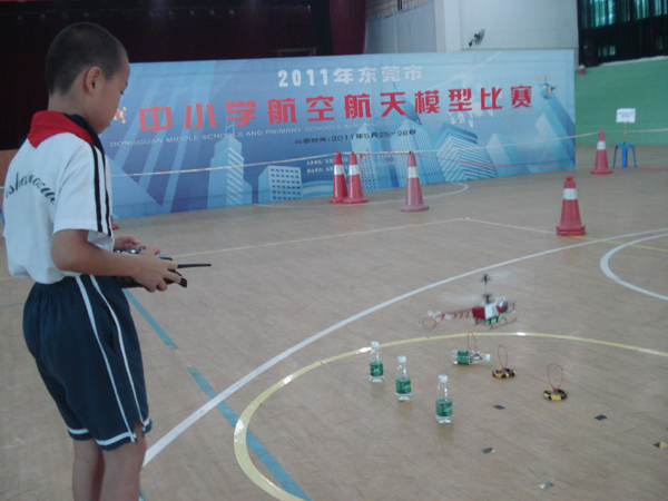 遥控航模项目已成为我市优势项目,选手们操作水平明显提高。遥控模型飞机绕标竞速赛竞争十分激烈。由2010年能完成12圈以上的不超过10名,提高到今年的38名选手突破12圈成绩。且获得15圈的好成绩也不再是一两名选手的梦想,小学男子组寮步横坑小学何嘉彬、小学女子组寮步横坑小学张燕蕾,中学男子组寮步香市中学钟铸豪均以15圈佳绩获小组冠军。