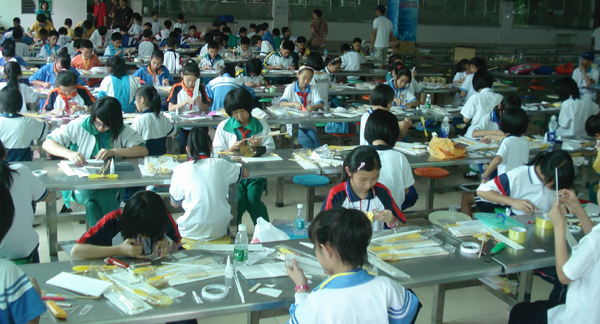 4个非遥控类项目全部由选手现场制作。其中橡筋动力模型飞机创意赛不提供成型套材,而是由选手现场剪裁、设计,再安装调试,更加体现对选手的创造能力和动手能力的考核。紧张气氛中,4个项目的拼装现场忙而不乱,594名选手神情专注,动作娴熟。很快,原本废弃的饮料瓶变成了一枚枚精美的水火箭,分散的零部件变成了一架架模型飞机。他们还对发射装备进行了精心准备,各具特色的火箭发射架、水火箭发射台体现出参赛师生对航模活动的热爱。随着裁判一声令下,140枚“水火箭”先后喷射而出,直接飞向50米外的靶心;90支“火箭”直冲云霄,箭载滑翔机在天空中盘旋。石龙爱联学校莫倩仪同学的滑翔机在天空中盘旋了足足180秒,超过平均数的五倍,令在场观众惊叹不已。