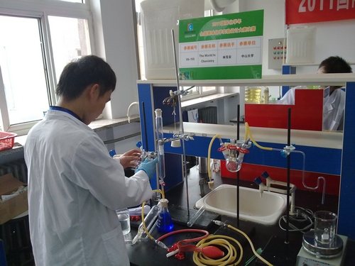 本次大赛,在广东省科协、广东省青少年科技中心的领导和支持下,我省化学学会教育科学专业委员会积极支持和配合中国化学会的工作,大力宣传、动员和组织大中学校的学生参与此项活动,并取得优异成绩。其中,广东省惠州市第一中学高一学生郑子辂同学设计完成的“氨之魔幻世界”项目和广东实验中学的陈柘、杨星云、钱冠桥同学设计完成的“灰肺烟灭——从一只鲜红的肺到一只黑肺的蜕变”项目荣获一等奖,由中山大学化学与化学工程学院2009级林笃安、张泽彬、黎煜然、胡洁君同学设计完成的“The World In Chemistry”项目荣获二等奖,华南理工大学的孙丽妃、陈立宇同学完成的“关于亲油疏水滤纸的展示实验”项目、华南师范大学的柳杰同学完成的“警钟”和“镜里看花”2个项目荣获三等奖。