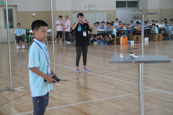 在遥控飞机绕标竞速赛项目中,我市选手囊括了所有两个组别的金牌。市青少年活动中心贺子航凭着沉稳的心态与过硬的技术以25圈用时183秒的成绩夺得小学组冠军,比第二名选手多出6圈。寮步香市中学钟铸豪常与贺子航一起训练,在全国赛更显“大哥”身份,以28圈用时185秒,远远抛离第二名选手8圈的成绩居中学组第一名。