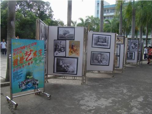 该校展出“我是艺术生”绘画作品展 据了解,除皮影戏外,茂名市第十七中学还一直坚持参加机器人大赛、航模制作等赛事。该校自2006年创建机器人协会以来,曾多次代表省市组队参加全国、全省机器人比赛取得优异成绩,先后连续三次代表茂名市参加广东省中学生电脑机器人比赛获得一等奖,并两次代表广东省参加中国中学生电脑机器人比赛获得银奖,曾获第七届广东省青少年机器人大赛足球比赛高中组的一等奖,获得第八届广东省青少年机器人大赛优秀奖,连续荣获第九届、十届、十一届、十二届广东省青少年机器人大赛足球比赛高中组的三等奖。特别是今年该校组队参加省科协举办的机器人大赛,作为粤西地区唯一的一支参赛队,不畏强手,顽强拼搏,最终取得创意机器人比赛高中组一等奖、机器人足球比赛高中组二等奖的优异成绩。航模制作也是该校开展青少年创新教育的一大特色,学校成立航模兴趣小组,组织学生利用课余时间制作航模并进行试飞和调试,市航模协会还定期到该校进行航模表演和训练,加强交流。在该校的航模制作室内,珍藏着80-90年代参赛的飞机模型和荣誉证书、牌匾,这些都见证了该校航模发展的辉煌历史。