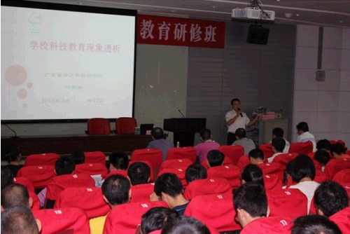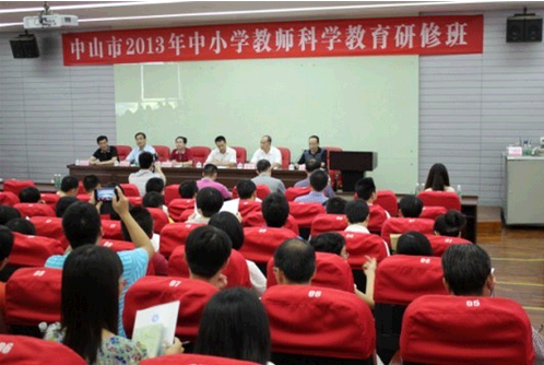 9月12日上午,由中山市科协和市中小学教师继续教育中心联合举办的中山市2013年中小学教师科学教育研修班(第五期)在市委党校隆重开班。全市近210位中小学科学教师参加学习培训。市科协副主席黎文杰出席开班议式并发表讲话。省科协科普部部长黄善辉,省青少年科技中心主任叶新鹏,市委党校校务委员、市教师进修学院副院长高科,市科协科普部部长陈旭东出席开班仪式。省科协科普部部长黄善辉作首场青少年科技创新辅导报告。