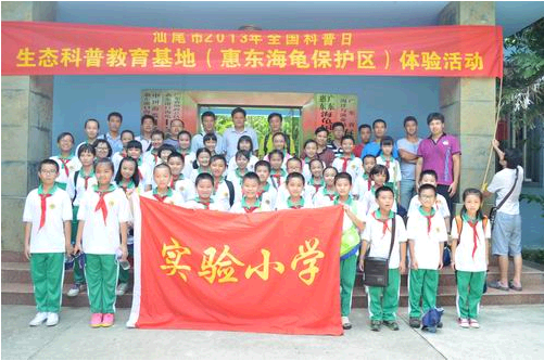汕尾市2013年全国科普日活动启动后,围绕环保主题,9月15日,汕尾市科协组织市实验小学师生代表50多人到惠东港口镇海龟生态科普教育基地开展体验活动。