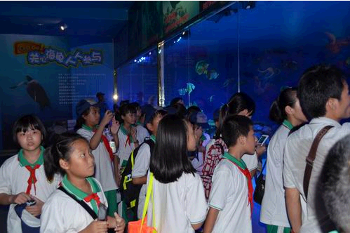 在体验活动过程中,学生们表现十分好奇、主动和积极。基地工作人员针对他们的年龄特点,用通俗易懂的语言,详细介绍了海龟的生活习性、生存现状等科普知识。在工作人员的带领下,学生们缓缓走过展览馆走廊,认真聆听工作人员的讲解,细致地看着标本和图片的介绍,并不时提出有关海龟生态的问题。在海龟养殖区参观时,学生们纷纷表示当亲眼看到海龟时,才真正感觉到“环保”原来就在身边。