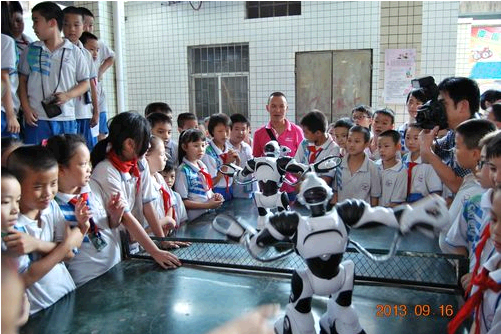 在学校专场,今年科普日活动增设了益智玩具体验和机器人表演,也受到了学生的热情欢迎。益智玩具把数学与游戏结合起来,不仅是一种娱乐工具,而且能提高玩者的观察、思考、想象、记忆和实践能力,增长人的智慧,开阔思维,培养动手能力及协作能力;机器人精彩的翻跟斗、跳舞、俯卧撑等高难度表演赢得了学生们的阵阵掌声,调动了同学们学科学的热情。