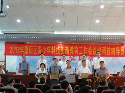 2012~2013年,第八届惠阳区青少年科技创新大赛共接受申报项目294项,其中科技创新项目62项、科技实践活动项目18项、科幻绘画204幅、科技辅导员项目10项。全区共有31项科技创新、8项辅导员项目、5项科技实践活动和30幅科幻绘画获区一等奖; 在第十一届惠州市青少年科技创新大赛中,夺得11个一等奖、20个二等奖、31个三等奖和2个专项奖;在第二十八届广东省青少年科技创新大赛中,获4个二等奖、6个三等奖和2个专项奖。此外,惠阳区组织7个代表队参加第六届惠州市机器人竞赛,夺得3金2银2铜的好成绩;在第十三届广东省省机器人竞赛中,获得3项三等奖。