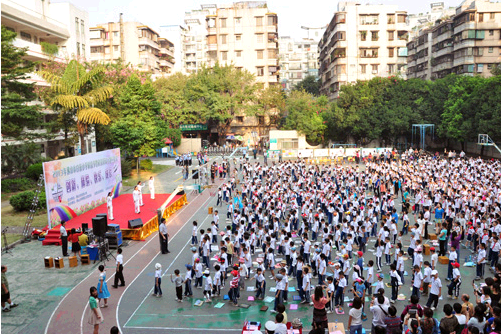 全校师生跳大自然操(佛山市白燕小学提供) 近年来,佛山市白燕小学在绿色教育理念引领下,以“创新、体验、快乐、成长”为主题,以科技实践活动为学校特色教育开展了各种形式的学生科普活动,全校师生通过外出科普考察,积极参与科学实验,参加全国、省市举办的各类科技竞赛,有效地促进了科普特色教育项目的蓬勃发展,使学校的科普活动走在全市的前列。正是丰富多彩的科技创新活动氛围,学校在全国青少年科技创新大赛优秀科技实践活动中取得一等奖的优异成绩。