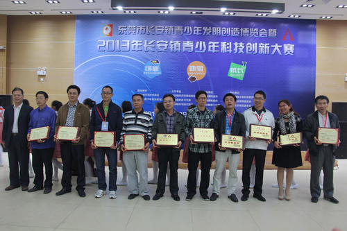 东莞市长安镇青少年发明创造博览会暨2013年长安镇青少年科技创新大赛现场 本次比赛请来广州大学教授、博士生导师王正询担任创新大赛评委主任,加上来自广州、深圳、东莞等地的资深评委按全国青少年科技创新大赛规则,公平公正地对参赛发明创造作品的作者进行现场问辩,对科幻绘画逐一评选,经过初评与终评两个阶段,最终在86件发明创造作品和136幅科幻绘画中,评出20件发明作品及32幅科幻画为一等奖,将代表我镇参加市的科技创新大赛。12所学校荣获优秀组织奖。
