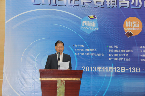 市科协副主席许为豪讲话并宣布开幕 据悉,长安镇开展青少年科技创新活动有着近二十年的历史,在全镇公民办中小学中有着丰厚的基础。本次展出如此多的历届获得市级以上的发明创新作品,并以博览会的形式展出,在全市属首次。