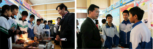 评委与参赛选手进行问辩(邹淑敏 摄) 本届大赛参赛项目集中反映了全市各地中小学校开展科技创新活动的总体水平,充分展示了全市青少年在科技创新活动方面的最新成果、创新精神和实践动手能力。经过评委会的考评问辩,本届大赛评委会主任、佛山科技学院张喜平教授在闭幕式上总结了这次大赛的特点: