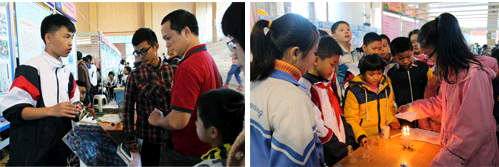 公众与参赛选手现场互动(邹淑敏 摄) 与往届大赛相比,本届大赛主题增加了“快乐”两字,希望赛事回归学生原点,真正办成学生喜爱的、能体验到幸福快乐的赛事。其次,希望通过大赛的平台,为广大青少年和科技教师提供一个交流分享的渠道,促进青少年科技创新的发展。
