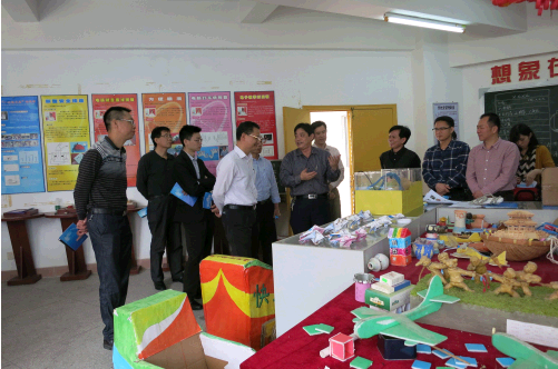 随后,黄宗太一行与实验小学的相关领导、科技辅导员代表等进行了深入的座谈交流,详细听取了近年来学校开展科学特色教育现状、具体做法、措施及取得的成绩、今后工作的发展方向及打算、存在的问题等;重点察看了学校的展览室、手工劳作室和机器人制作室等;认真观看了教师学生发明创新的作品演示和机器人足球对抗赛训练。黄宗太一行对实验小学在科学教育工作上取得的成绩给予了高度评价,对今后的科学教育工作也提出了具体建议,希望实验小学在科学教育创新方面,要充分发挥合作优势、基础优势和人才优势等三个优势,进一步推进学校科技创新教育工作再上新台阶。