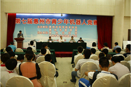 由惠州市科学技术协会、惠州市教育局联合主办,惠州科技馆、惠州市青少年机器人协会协办的第七届惠州市青少年机器人竞赛于2014年4月19日在惠州科技馆举行,来自市直、县(区)7个代表团的57支队伍、130多名参赛选手和60多名指导老师参加了竞赛。