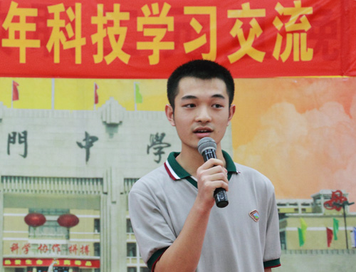 第十三届中国小小科学家获得者黄璜同学发表创新感言(佛山市南海区狮山石门高级中学 供图)
