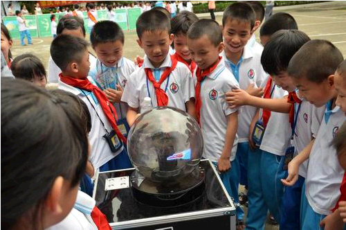 学生们观看科普大篷车展品演示
