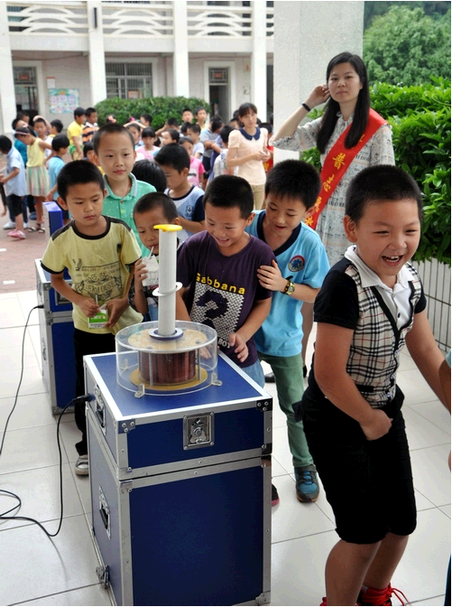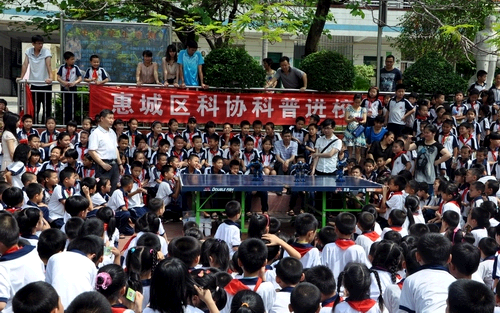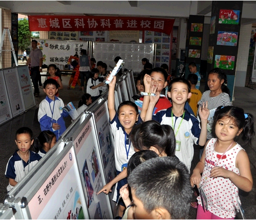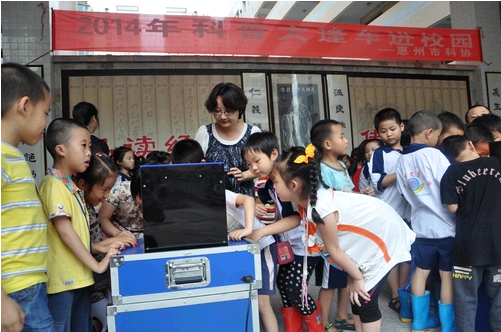 感受科学魅力,庆祝科学“六一”。为了让乡村学校少年宫、民办小学外来工子女过个有意义的儿童节,“六一”儿童节前后,惠州市惠城区科协组织科普大篷车、机器人等进校园展示、表演活动,给乡村学校少年和民办小学外来工子女送去了“大篷车”科学游戏、机器人表演、科普图片展,向乡村学校少年宫学校、民办小学等赠送科普知识图册、挂图。