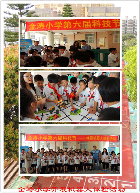 汕头市金涛小学第六届科技节活动于5月23日上午举行,主题是“创新、体验、快乐、成长”。科技节开幕式当天,学生科技小发明作品、科普教育图片展览在综合楼四楼。当琳琅满目的科普图片和众多科普仪器集体亮相后,同学们纷纷跑上前争相观看,一边操作,一边思考,相互讨论,为解开其中的奥妙兴奋不已。