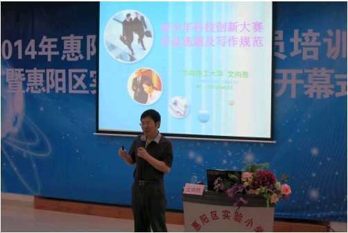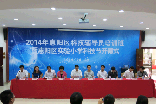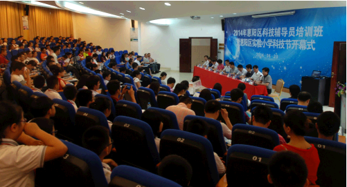仪式上,朱文转宣布全区科技辅导员培训班开班暨惠阳区实验小学科技节开幕,随后,与会人员参观了惠阳区实验小学科技创新教育成果作品展。全区100多名科技辅导员接受了业务培训。培训班专门邀请了华南理工大学材料学院教授文尚胜和佛山市南海区石门高级中学教师闫灵麟做专题辅导授课,他们分别讲解了青少年科技创新大赛作品选题及写作规范、如何指导青少年参加科技竞赛两方面的内容,并与学员们进行深入的互动交流。