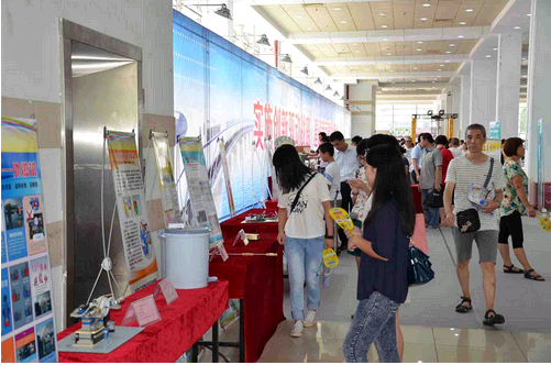 7月12日上午,馆外艳阳高照,馆内热闹非凡,在五邑华侨广场会展馆不时传来惊奇的欢呼声,热烈的掌声回荡在会展馆内里。市民群众纷纷围着科普互动展品观察,不时提出各种思考及疑问,“汉密尔顿路径究竟如何使路程实现最短呢?”、“如何用小五角星拼出一个大五角星呢?”、“这个陀螺真神奇呀,它的科学原理是什么?”这是由江门市科协邀请的广东科学馆科普大篷车开进了2014年江门市创新创业大赛与科技成果展活动会场的一幕。