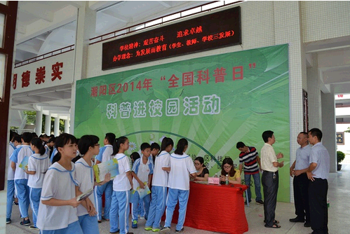 9月28日上午,汕头市潮阳区“全国科普日”科普进校园活动在潮阳一中明光学校举办。此次活动由区科协联合区科技局、区环境科学学会、区气象学会、区人民医院主办,汕头市潮阳一中明光学校协办。区科协主席吴增勇等同志参加了该项活动。2014年“全国科普日”主题为:“创新发展,全民行动”。主办单位围绕主题,以“创新引领未来、创新改变生活、创新在我身边、创新圆我梦想”为主线展开活动。