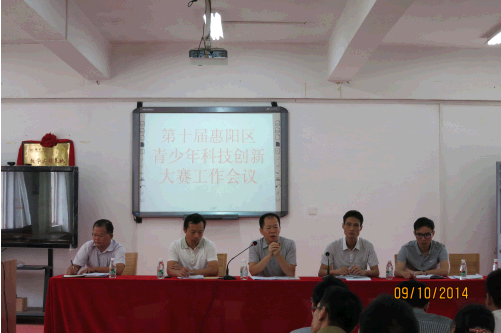 会议由惠阳区政府教育考试中心主任曾越斌主持。惠阳区科协副主席陶向阳对第十届惠阳区青少年科技创新大赛的相关工作进行了详细解读和部署,提出了具体的工作意见和要求。与会人员还对如何在学校开展好科技创新活动、引导学生创作出好作品、力争在各级大赛中取得新突破等问题展开了热烈讨论,并提出了很好的意见和建议。