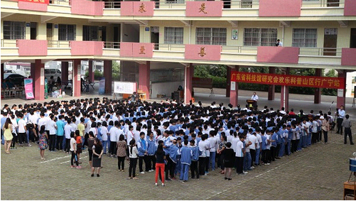 2014年10月30~31日,河源市科技馆参加广东省科技馆研究会“欢乐科普山区行”(广宁站)活动。此次活动在肇庆市广宁县何楮铭纪念中学、南街镇中心小学举行,活动由广东省科技馆研究会、肇庆市科学技术协会、广宁县政府联合主办,广宁县科协、广东科学中心、广东科学馆、河源市科技馆等15家单位承办,广宁县何楮铭中学、南街镇中心小学协办。