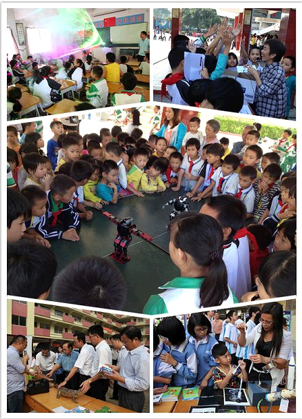 本次活动,汇集了全省15家科普场馆及相关单位的20多项极具趣味性、互动性和体验性的科普活动,包括:精彩纷呈的科普实验秀、航模、激光和机器人等表演;趣味十足的创意机器人实验课;与生活息息相关的“近视防控”科普讲座及近视筛查;体验天气预报员工作的“天气播报”活动;新颖的移动“球幕影厅”、3D科普电影、3D立体电视体验;手工昆虫拼图、动物拼图等互动活动;各种玩转思维的益智展品;还有实物昆虫标本展览,珍稀动物标本展,“保护野生动物,普及鸟类知识”科普挂图展览,两爬类动物挂图展,中医药科普知识展等众多有趣的主题展览。此外,各活动单位还为同学们准备了科普图书、光盘、小册子、小礼品等科普资料,广东科学中心、东莞市科学技术博物馆、深圳科学馆、广东中医药博物馆、肇庆市科技中心、广东省昆虫研究所、广州动物园和中山眼科中心等单位分别向两所学校捐赠了科普图书、光盘、科普小册子等共计近2000套。两天的活动现场气氛热烈而有序,各个项目前围满了参与的学生,欢声笑语不断,很多表演项目由于观众源源不断,需要临时加场。校园里变成了欢乐的海洋,洋溢着嘉年华般的节日气氛。两天的活动吸引了近4000人次参与。