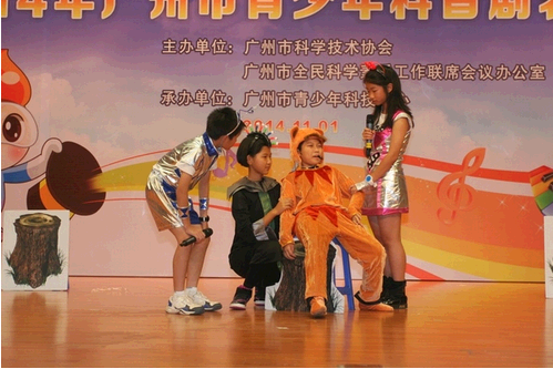 11月1日,2014年广州市青少年科普剧大赛在广州科技馆成功举办,共有17支中小学代表队参加。广州市白云区人和镇第四小学的《一路平安》和广东实验中学的《小狗奇遇记》分获小学组和中学组的第一名,将代表广州市参加11月22日-23日在东莞举行的第二届广东省科普剧大赛。