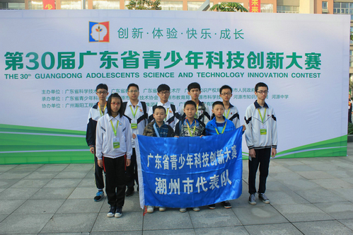 潮州市选送33个项目参加本届广东省青少年科技创新大赛展评,在本次大赛中获得喜人佳绩,共获得各项奖励25项,创历届最好成绩。其中学生科技创新成果竞赛项目获得一等奖3项、二等奖3项、三等奖4项,科技实践活动项目获得二等奖1项、三等奖2项,少年儿童科学幻想绘画获得一等奖2项、二等奖1项、三等奖4项,“专利申请”奖1项,河源市人民政府市长奖1项,华南师范大学附属中学科技创新奖2项,瀚阳科技英才奖1项。潮州金山中学黄胜刚老师被评为“广东省十佳优秀科技教师”,潮州金山中学被命名为“广东省青少年科学教育特色学校”。