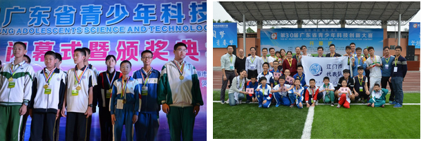 3月28日,第30届广东省青少年科技创新大赛在河源中学隆重举行。有来自全省各地的2000多名青少年现场展示自己的创新精神和动手能力。江门市组团38名参加竞赛的学生选手和科技辅导员,携带项目和作品41项(幅)参加了竞赛。经过与全省24个代表队激烈角逐,终获得42个奖项。其中,江门市紫茶小学马艺鸣《红茶对瓶插玫瑰花保鲜的探究实验》项目勇夺青少年科技创新成果(小学组)一等奖;开平市长沙街幕村小学的学生两幅科幻绘画获全省一等奖。