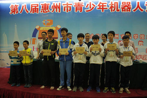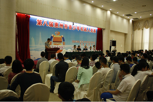 由惠州市科学技术协会、惠州市教育局联合主办,惠州科技馆、惠州市青少年机器人协会协办的第八届惠州市青少年机器人竞赛于2015年4月18日在惠州科技馆举行,来自市直、县(区)7个代表团的70支队伍、166名参赛选手和84名教练员参加了竞赛。