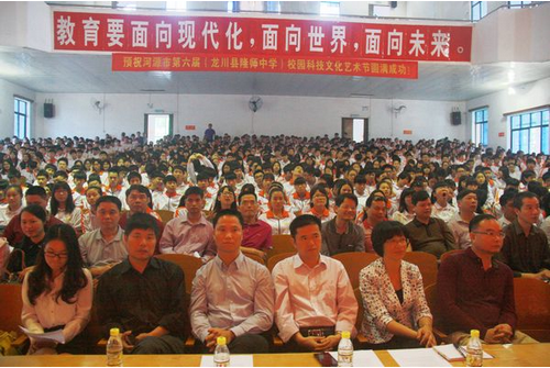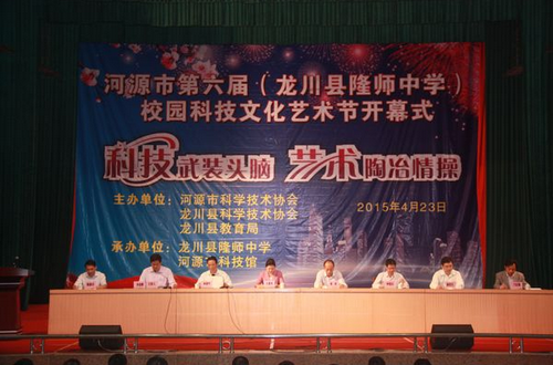 4月23日上午,河源市第六届校园科技文化艺术节开幕式在龙川县隆师中学隆重举行。开幕式由龙川县政府副县长李春辉主持。市人大常委会副主任、科协主席吴素香出席开幕式并讲话,副市长章权宣布河源市第六届校园科技文化艺术节开幕,龙川县委副书记钟碧平、隆师中学校长刁宜强致辞。