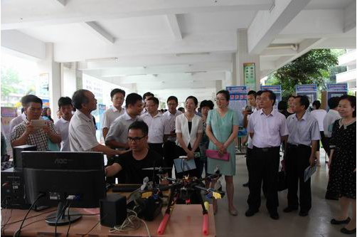与会领导参观了青少年科技成果展示暨茂名市第十六中学科技节现场,观看了2015年茂名市青少年科技创新大赛优秀作品、茂名市第十六中学组织的科技大连环表演、水火箭比赛及四驱车拼装竞速赛、筷子投石机、汽车模型与航海模型、环保作品与生物标本等科技创新作品,以及足球机器人表演、四旋轴翼飞机现场遥控飞行展示。现场还展出了科普大篷车车载展品、茂名市数字科技馆科普展示终端展示、广东石油化工学院大学生参加高校科技创新大赛获奖项目展板,内容丰富多彩,现场热闹非凡。观摩人员纷纷表示,这是茂名市青少年科技成果展示最大型的一次活动,集中了全市青少年学生的科技创新成果和优秀作品,是一次难得的学习交流机会。
