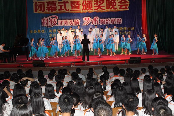 为举办好本届校园科技文化艺术节闭幕式暨颁奖晚会,隆师中学精心准备了舞蹈、歌唱、乐器演奏、诗歌朗诵等精彩节目。同学们载歌载舞的精彩表演,激起了观众席上一阵阵掌声和喝彩声,为本届校园科技文化艺术节划上了圆满的句号。