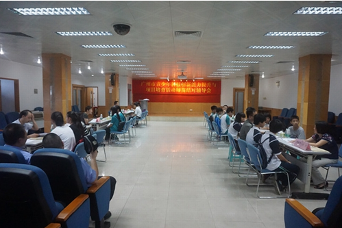 7月12日,由广州市科学技术协会和广州市教育局主办、广州市青少年科技中心和广州市青少年科技教育协会承办的2015年广州市青少年科技创新能力提升与项目培育活动首场师苗结对辅导会在广州青少年科技馆拉开帷幕。31位来自广州市各学会协会、科研院所、高等院校和企业的教授、专家组成的科技导师辅导团队,对从科技申报项目中脱颖而出的200个项目进行专业配对和辅导。