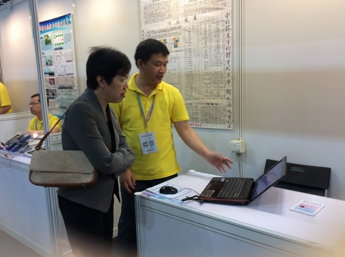 香港特别行政区政府创新科技署署长、大赛筹委会副主任蔡淑娴女士饶有兴致地了解发明项目