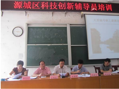此次培训邀请了有丰富科技创新教育经验的河源中学老师陈志能为大家上课。陈老师以考察天霁湖为例子,从多方面讲述如何带领学生展开联想,开拓思路,让参加培训的校长和辅导员老师学到科技创新教育教学知识,进一步提高了辅导能力,将为开展源城区青少年科技创新活动打下坚实基础。