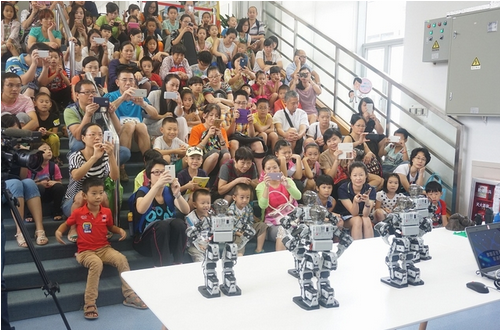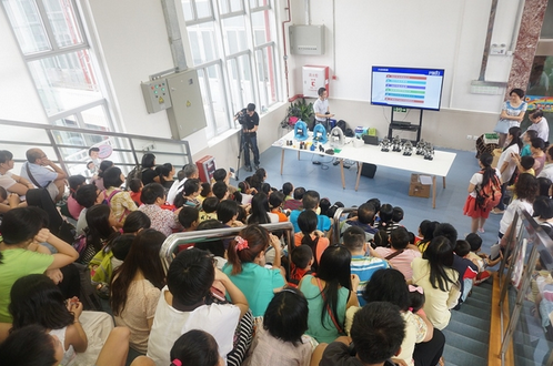 本次活动吸引逾百位小朋友和家长参与,在3D打印展位上,小朋友们围在3台国产3D打印机前好奇地发问“除了打印塑料的东西,还能打印金属的吗?”、“能打印不同颜色的公仔吗?”等问题,工作人员一边展示一边为小朋友答疑讲解。最受小朋友们欢迎的,要数机器人跳舞表演了。6台小型机器人站成两排,伴随音乐节奏翩翩起舞,小朋友们看得入迷。表演结束后,小朋友们还意犹未尽围着操控员问,“这些机器人是CPU控制的吗?”、“这些机器人能帮我干活儿吗?”......今年8岁的小鹏看了机器人表演后说,“真的很神奇,我让爸爸给我借几本关于机器人的书。”本次活动还安排工作人员专门指导小朋友们亲手粘贴圆筒、安装棱镜、放入塑胶花瓣,制作一个属于自己的“万花筒”。
