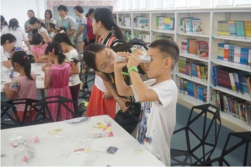9月13日,由广州市青少年科技中心组织的“千师万苗工程,制造改变未来,创新科普体验站”活动走进广州市少年儿童图书馆,为小朋友们提供了机器人跳舞表演、3D打印技术展示和手工制作“万花筒”等三个体验项目。