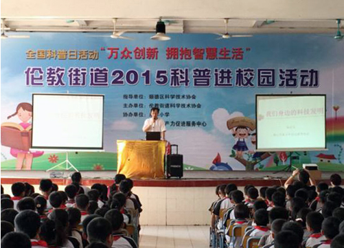 为激发广大青少年对科学技术的兴趣,提高创新意识,由佛山市顺德区科学技术协会、伦教街道科学技术协会、伦教生产力促进服务中心组织开展的“伦教街道2015科普进校园”图片展以及科普知识讲座活动于2015年9月24日在永丰小学举办。此次活动,特邀佛山科学技术学院教授杨定安为永丰小学师生作出教育和指导。