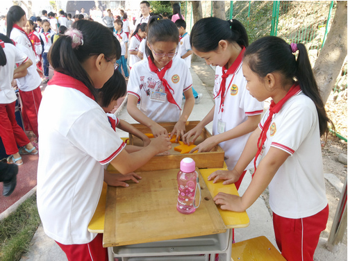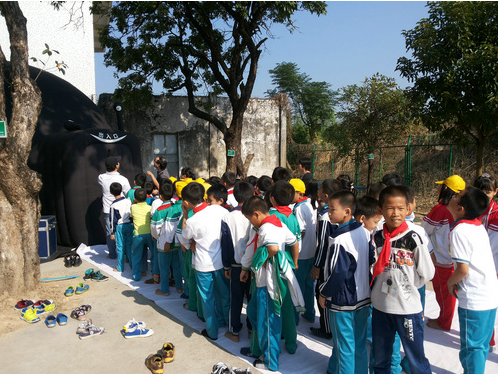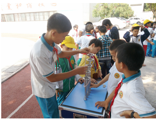 在活动现场,学生们争相体验“科普大篷车”带来的“平稳球”、“穿针引线”、“九连环”等科普展品,欣赏机器人表演,阅读科普图书,参加人机互动的科普游戏。科技老师还现场演示了多种飞机和汽车模型,并为学生们发放了奖品。