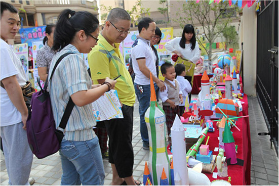 东城御峰金钥匙幼儿园举办的科学技术普及体验项目,更将科技节推上高潮。小朋友们和家长踏入门口,第一件事就是找自己的科技模型作品,合影留影上微信,亲朋好友共分享。还有谁的更漂亮,想着下次再上榜。开心时光是颁奖,小孩面上喜洋洋,爸爸妈妈一齐上。